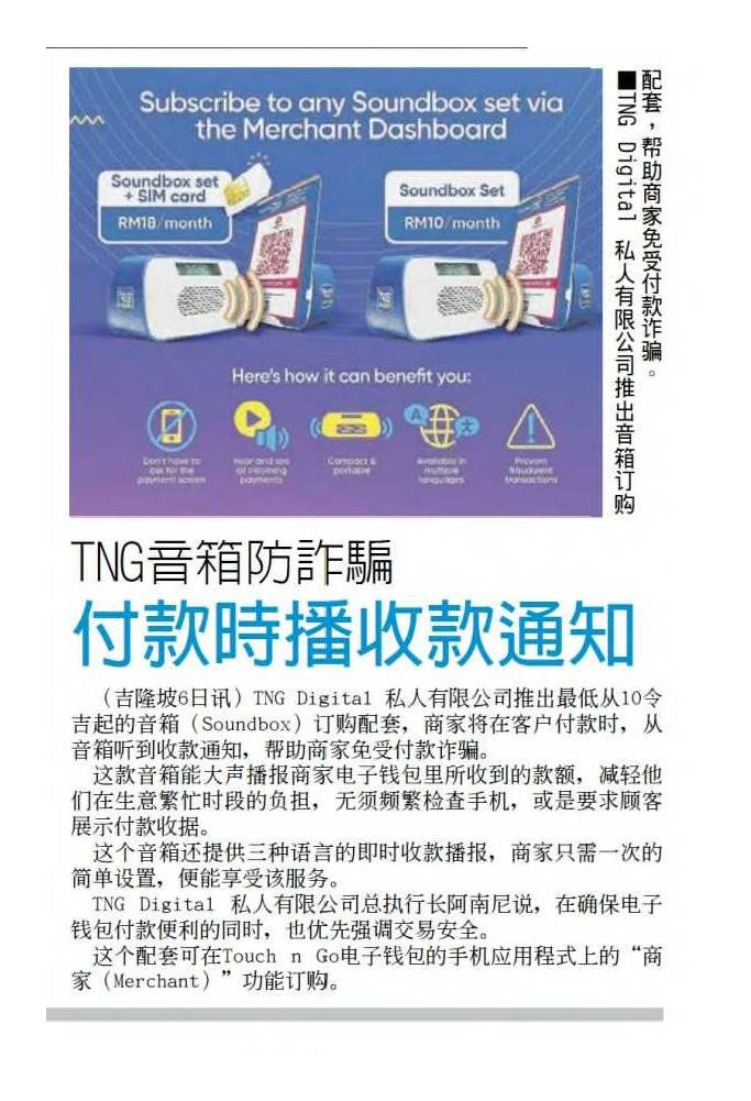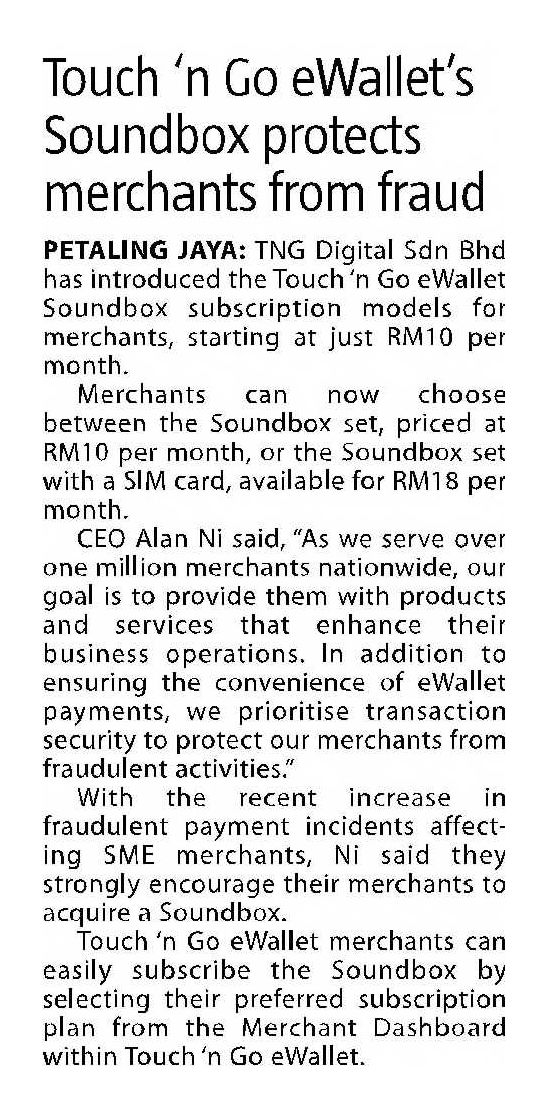 The Sun | Touch 'n Go eWallet's Soundbox protects merchants from fraud |