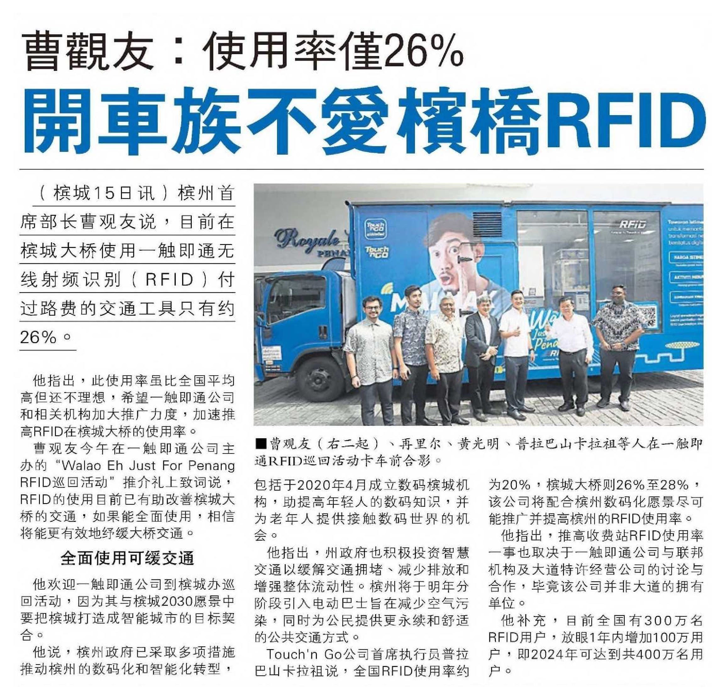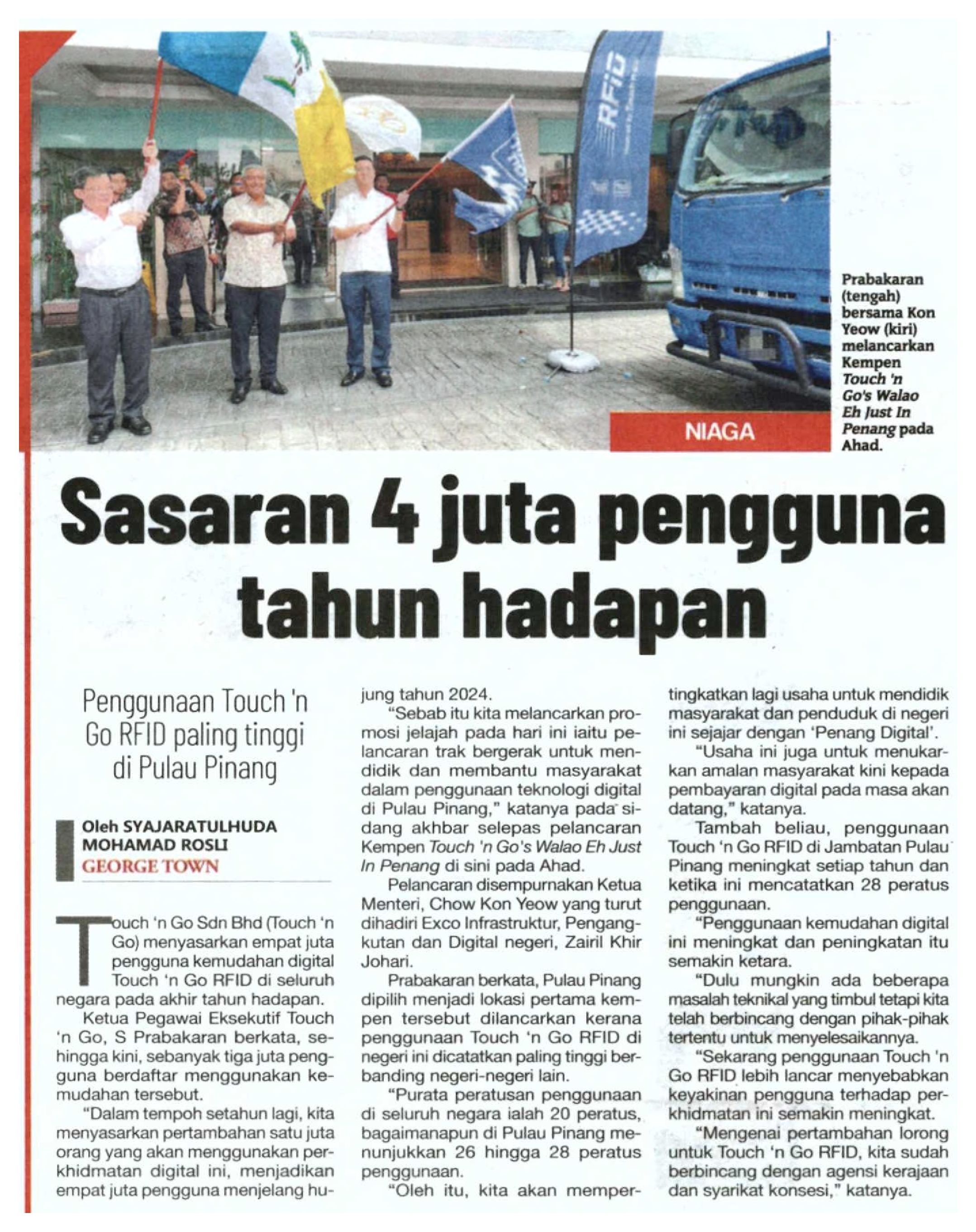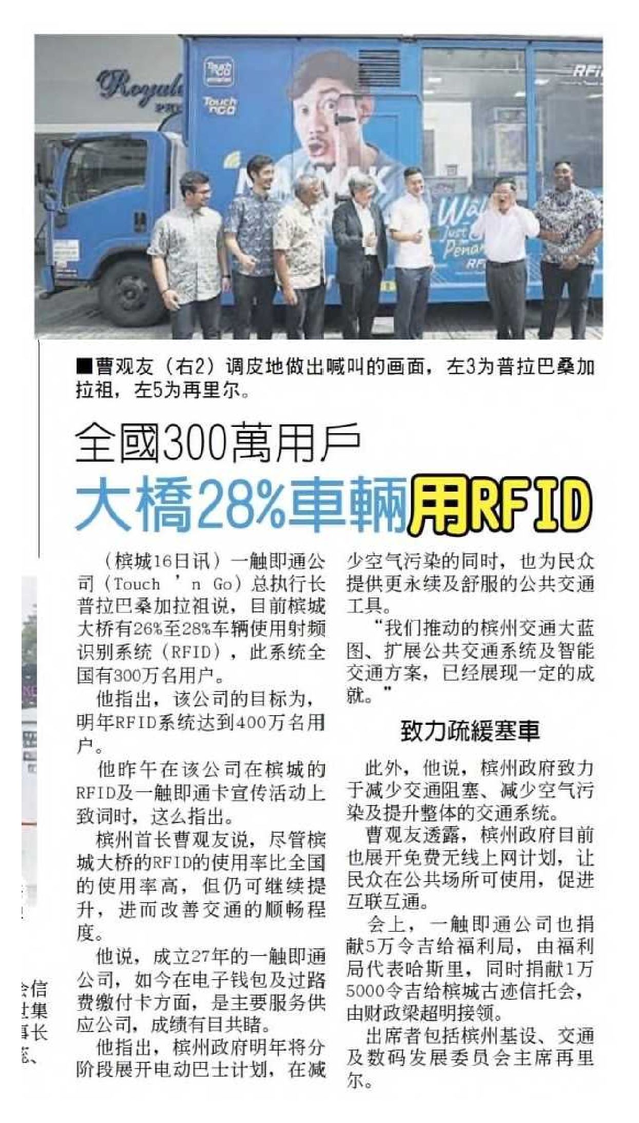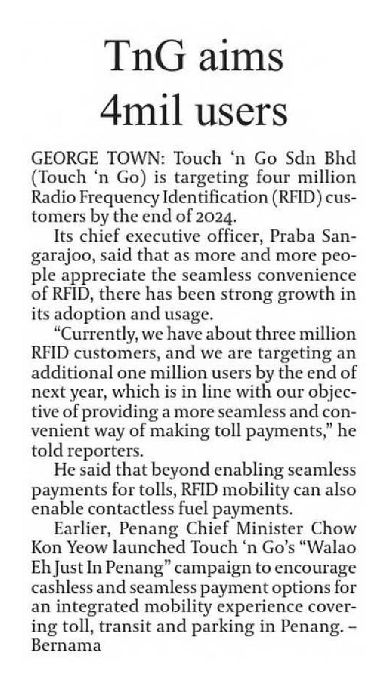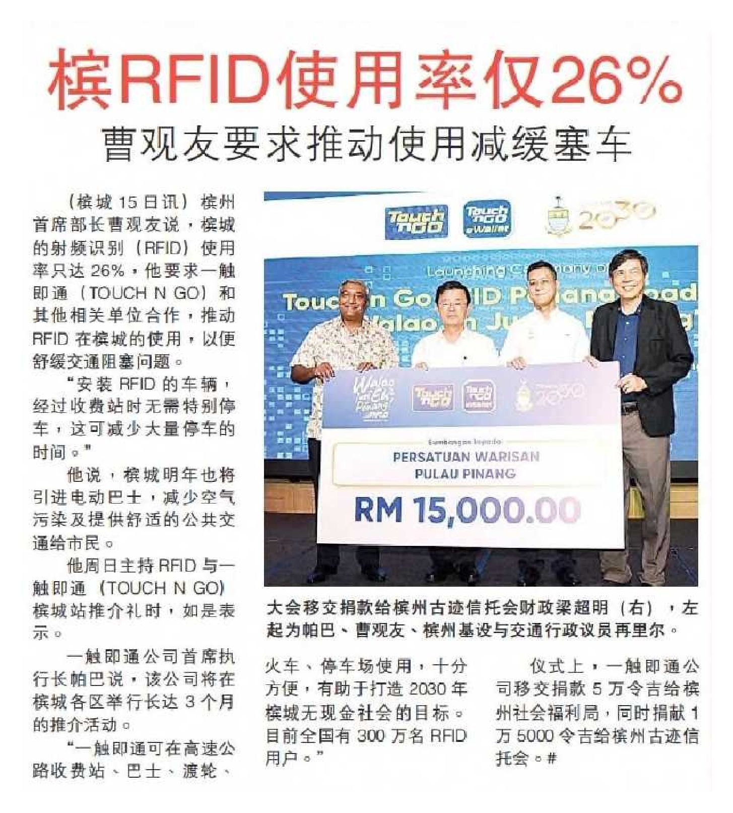 “Being a homegrown fintech company and a pioneer in integrated mobility solutions, Touch ‘n Go is excited to play a key role in driving Penang’s smart city agenda through the introduction of high-value products and solutions that incorporate the latest innovations in RFID and NFC technology to enable a seamless and integrated mobility experience for Penangites,” he said.