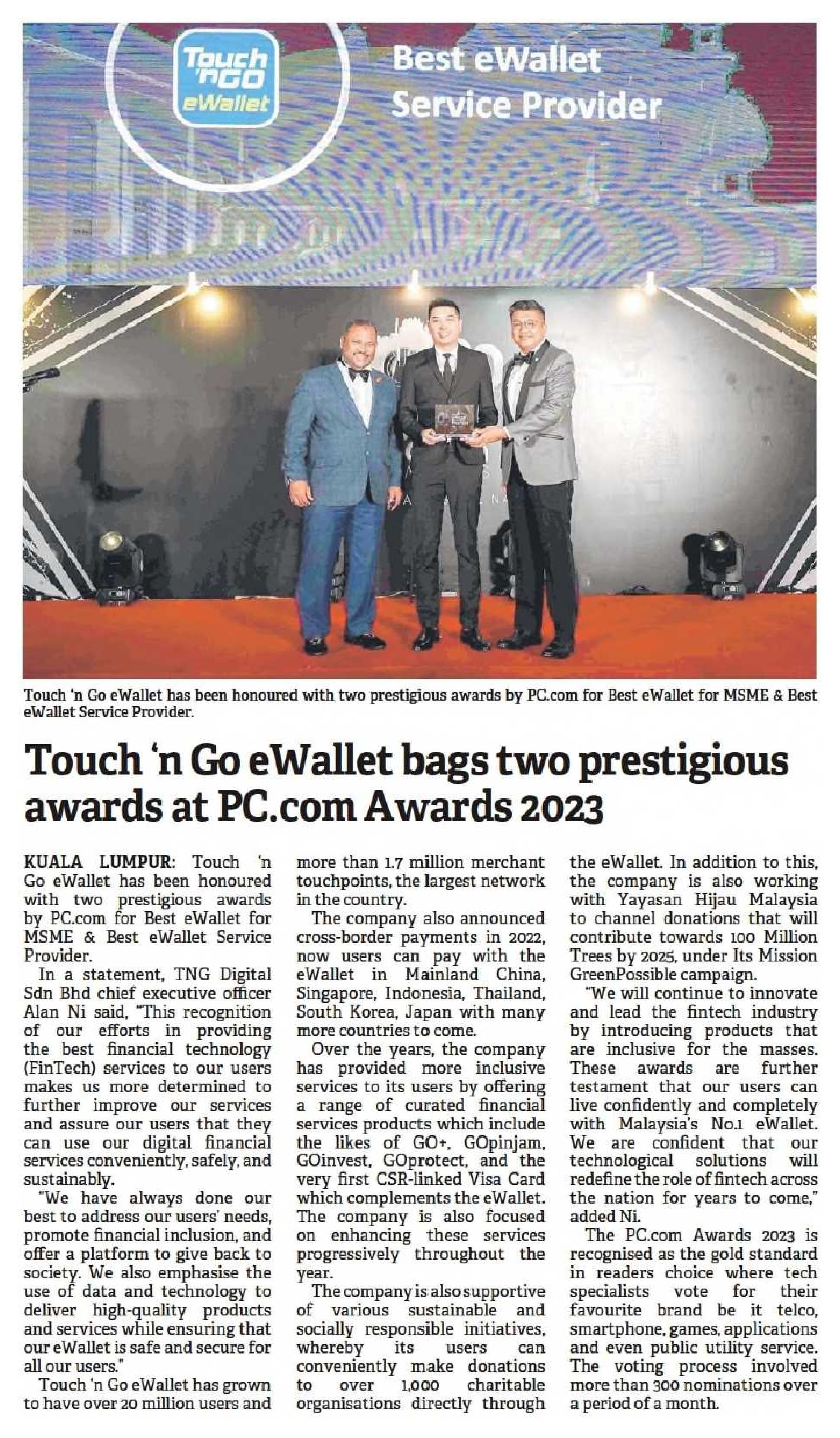 The Borneo Post Sarawak | Touch 'n Go eWallet bags two prestigious awards at PC.com Awards 2023 |