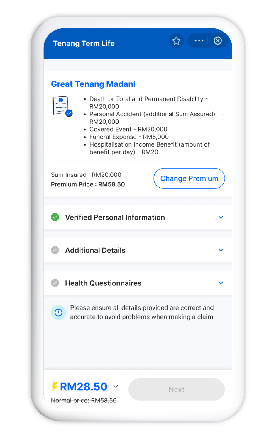 • Dapatkan sebut harga kompetitif dari rakan insurans dan takaful kami serendah RM50
