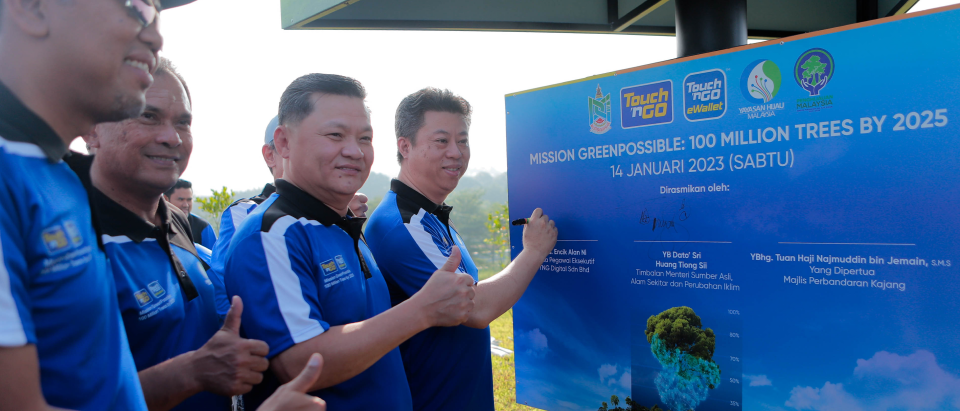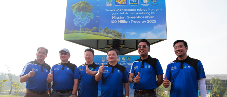 '100 million trees by 2025' is a mission within the Greening Malaysia Agenda, which is a National agenda; set by the Ministry of Natural Resources, Environment and Climate Change via its agency, Yayasan Hijau Malaysia, and led by the Forestry Department of Peninsular Malaysia. As of 21 February 2023, the agency has planted 57 million trees. The mission may be accomplished earlier with the support of Malaysians and Touch 'n Go Group.
