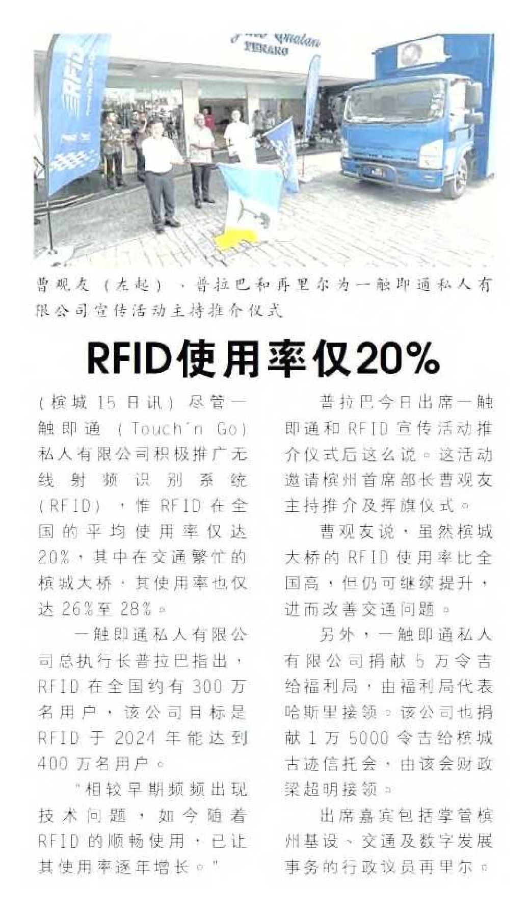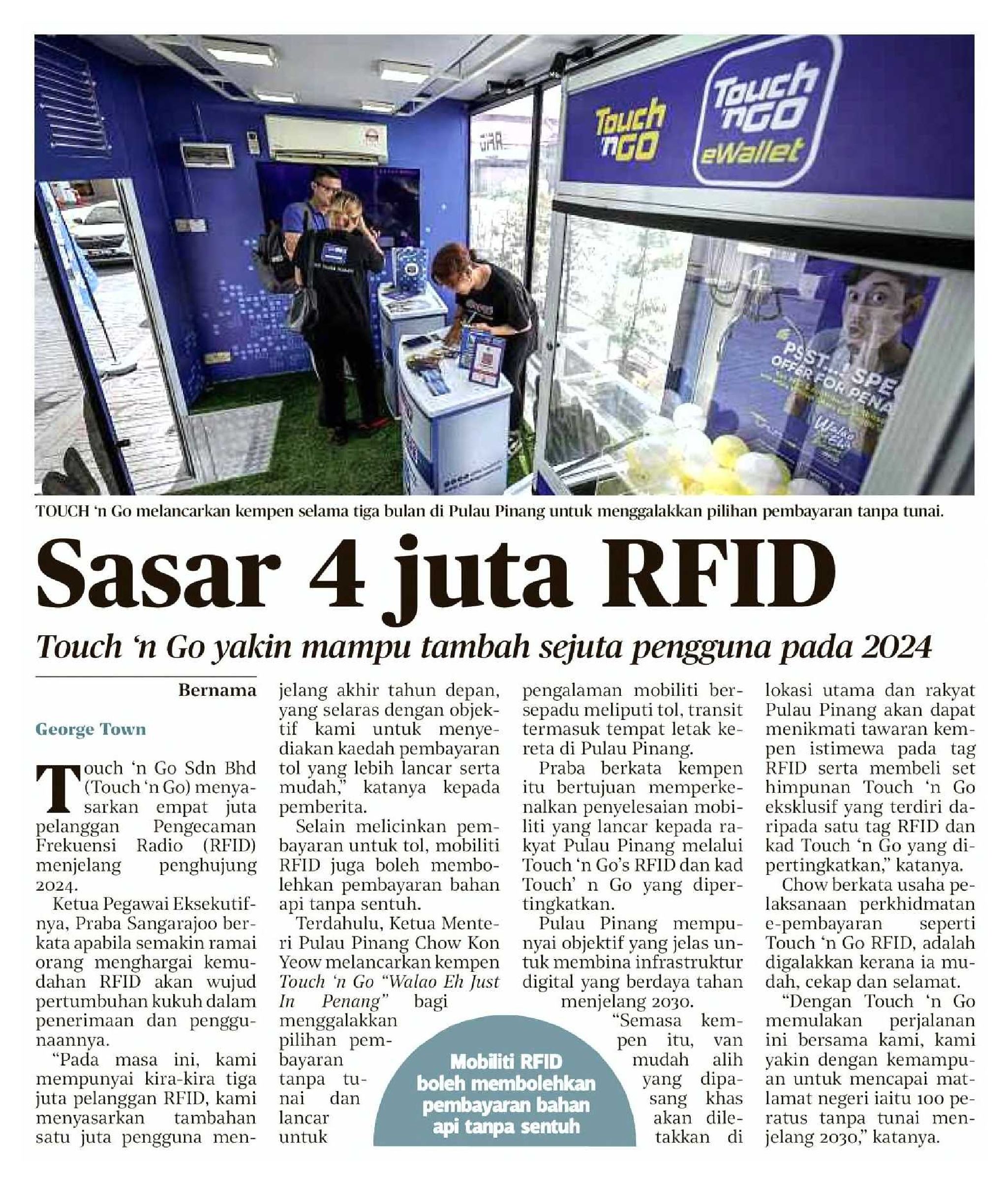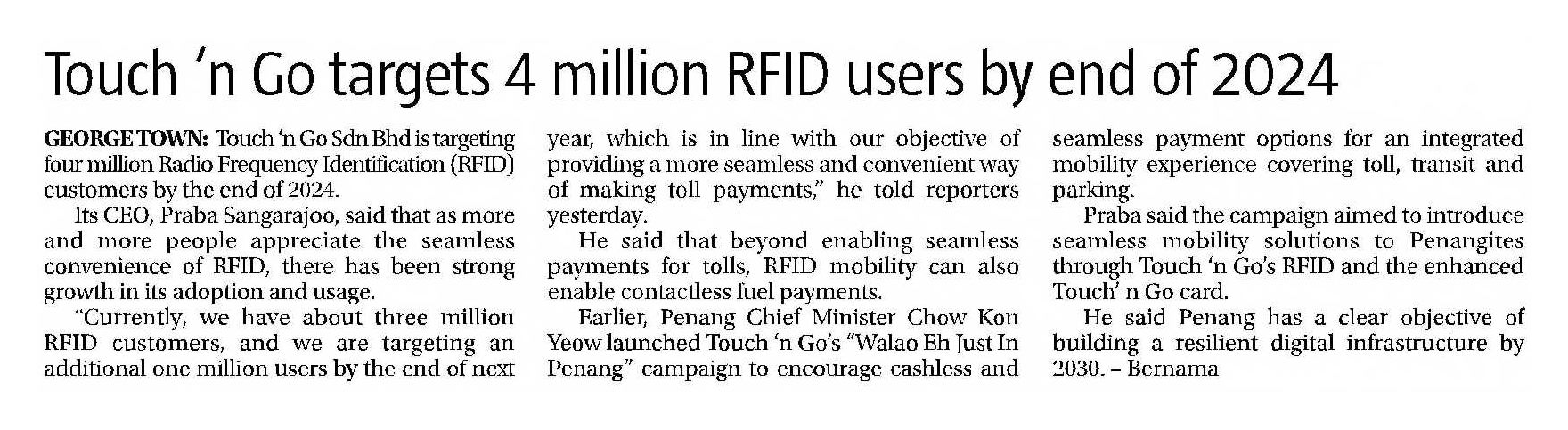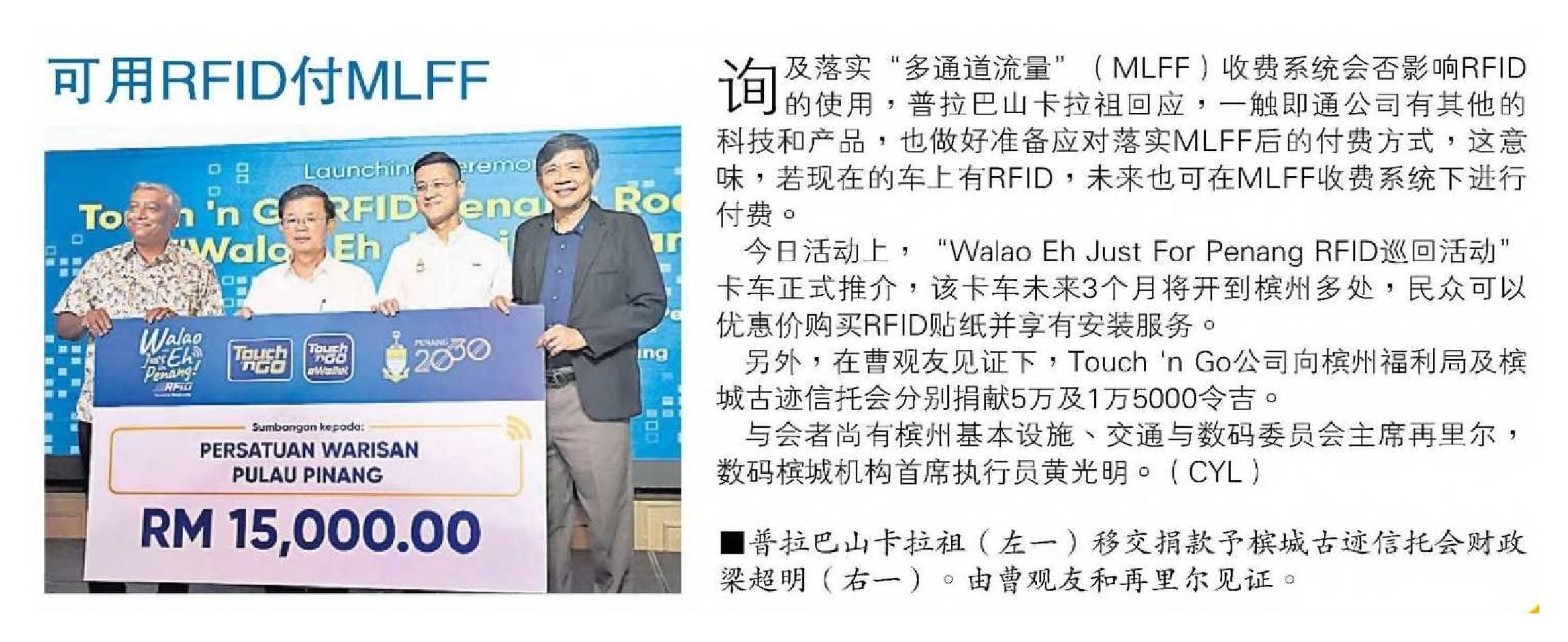 “Being a homegrown fintech company and a pioneer in integrated mobility solutions, Touch ‘n Go is excited to play a key role in driving Penang’s smart city agenda through the introduction of high-value products and solutions that incorporate the latest innovations in RFID and NFC technology to enable a seamless and integrated mobility experience for Penangites,” he said.