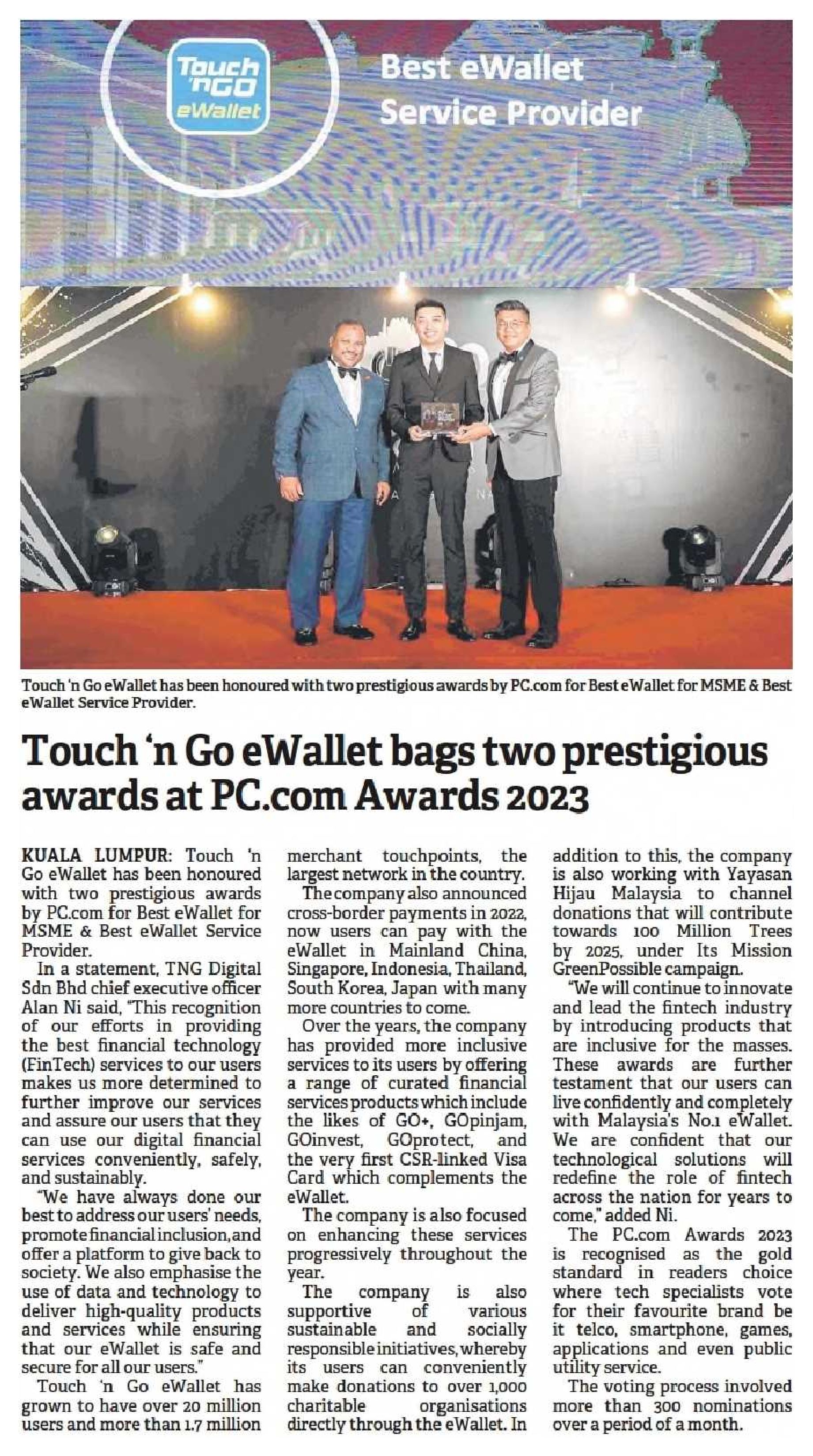 The Borneo Post Sarawak | Touch 'n Go eWallet bags two prestigious awards at PC.com Awards 2023 |